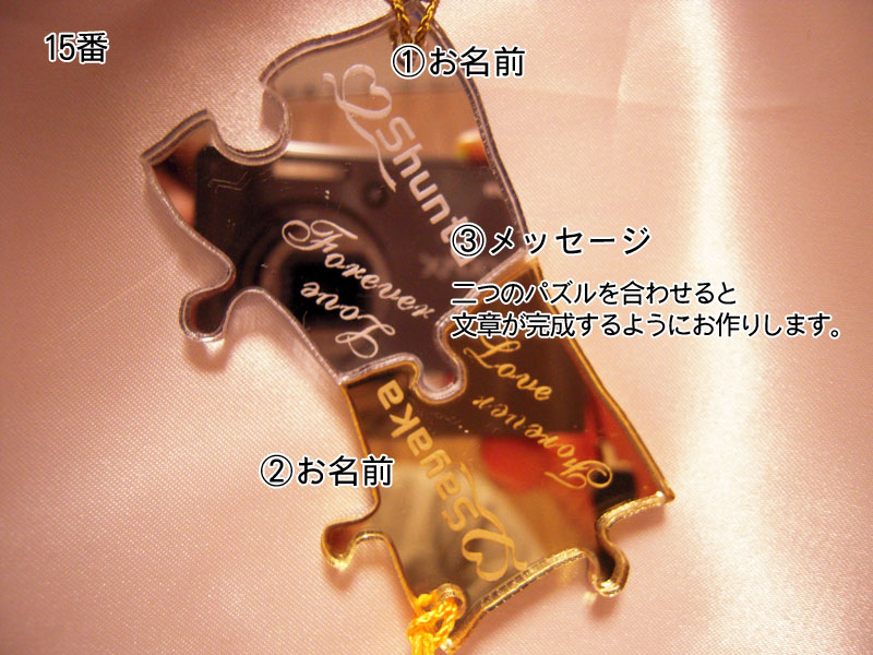 ご注文の際は、①~④の項目と各アクセサリーの色(ゴールド・シルバー)を注文フォームの「彫りこむ文章」のところでご指定ください。