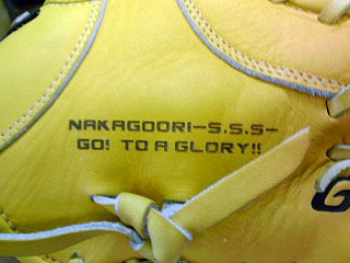 野球のグローブにチーム名を入れてみました。名前やお気に入りの言葉などを入れてもよさそうですね!